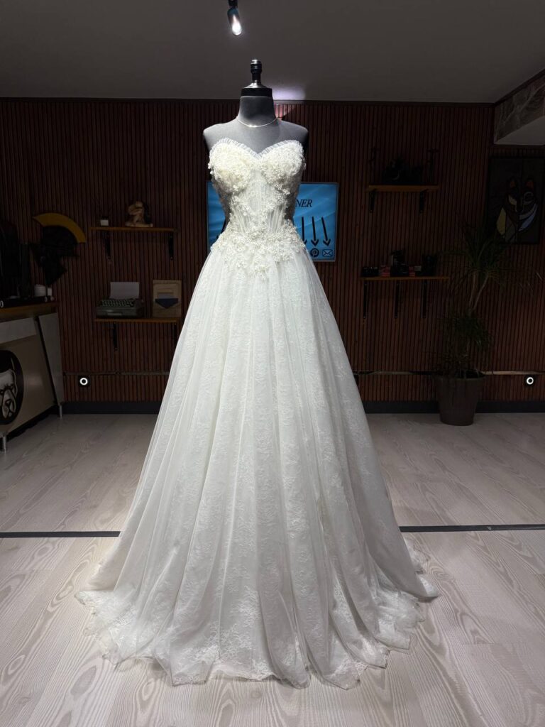 Kişiye özel tasarım seçeneklerimizle, hayalinizdeki gelinliği birlikte şekillendiriyor; vücut yapınıza, tarzınıza ve düğün konseptinize en uygun modeli en ince detayına kadar sizinle birlikte planlıyoruz. Dantel dokunuşlarından inci işlemelerine, modern kesimlerden klasik modellere kadar her zevke ve hayale hitap eden tasarımlarımızla yanınızdayız.